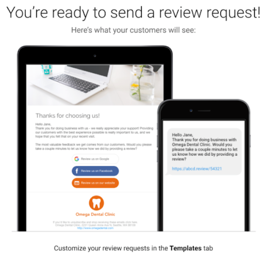 Customer Voice gives you the flexibility to request reviews over text message or email.